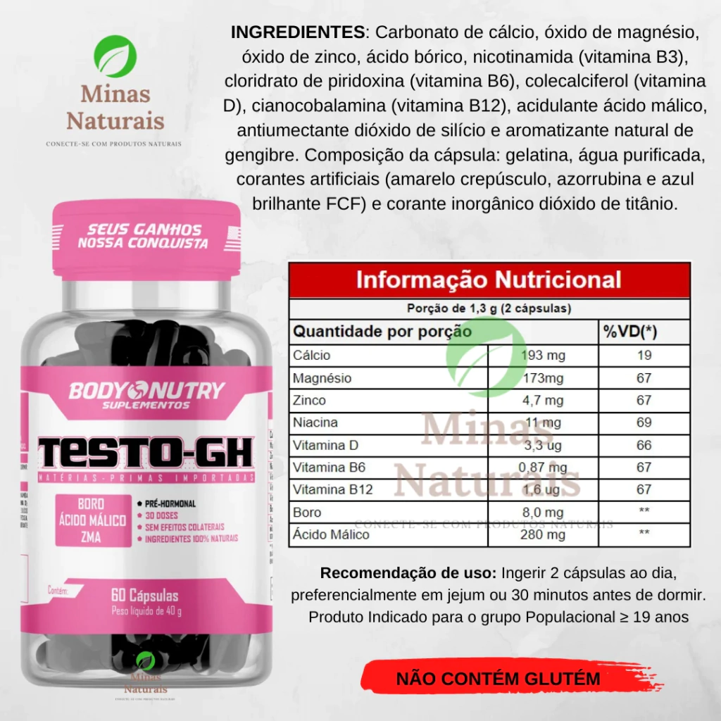 É um pré hormonal que fornece nutrientes e estímulos naturais para a produção de hormônios no organismo, feito a base de GH e IGF-1, que aumenta os níveis de testosterona com ingredientes 100% naturais.